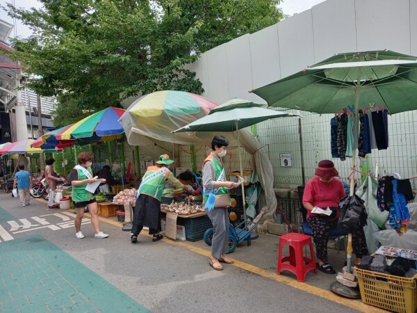 지역 자율방재단과 공무원 등 50명이 참여한 가운데 오색시장에서 “여름철 폭염 충분한 물 섭취와 휴식으로 예방합시다”동참을 위한 리플릿 등 각종 홍보물을 시민들에게 배부했다.