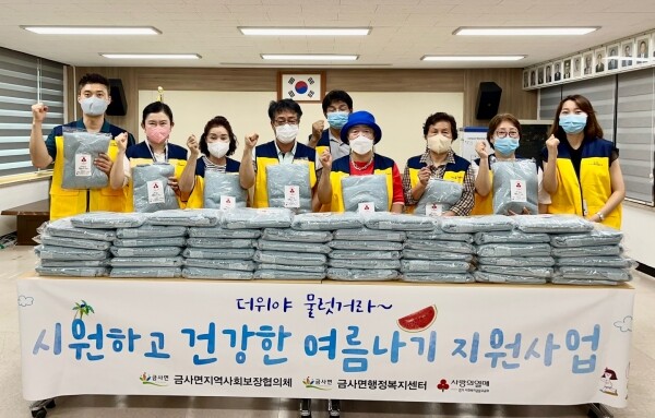 ‘시원하고 건강한 여름나기 지원 사업’은 금사면 지역사회보장협의체 위원 등이 복지사각지대 취약계층 54가구에 냉방용품을 지원하는 사업이다.
