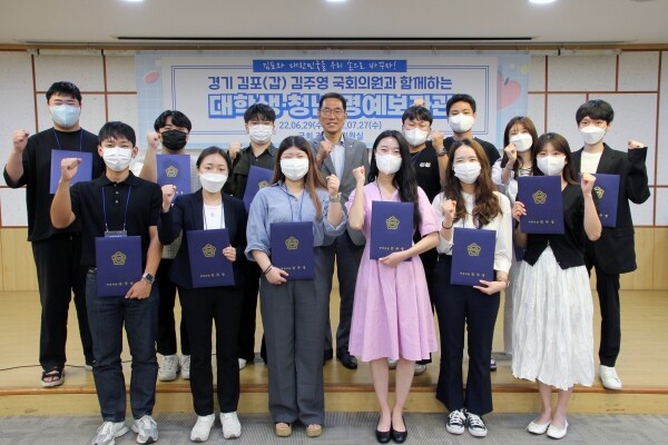 ‘경기 김포 김주영과 함께하는 대학생·청년 명예보좌관 1기’는 김주영 국회의원과의 만남을 시작으로 2주차 입법과정 멘토링과 국회 투어, 3주차 관세청 김포세관 방문, 4주차에는 김포시청과 김포시의회 견학과 함께 더불어민주당 경기도당 김포시갑 지역대의원대회 참관을 진행했다.