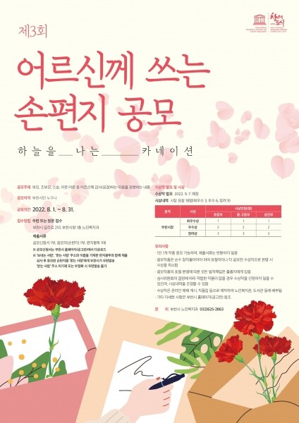 공모주제는 부모, 조부모, 스승, 이웃 어른 등 어르신께 감사하는 마음을 표현하는 내용이며 부천시민 누구나 참여할 수 있다.
