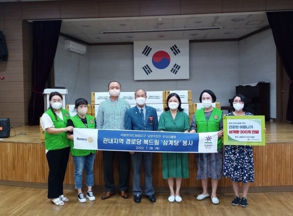 이날 남양주진건 로타리클럽에서 준비한 삼계탕 312개는 어르신들이 무더위 쉼터로 이용하는 진건읍 내 경로당에 전달됐다.