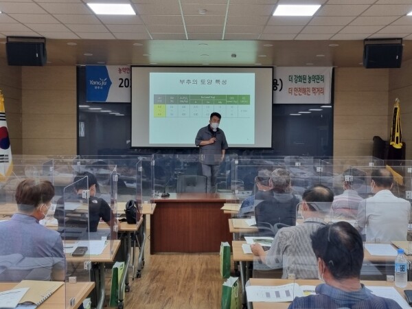 이번 교육은 지난 2019년부터 본격 시행된 농약 허용물질목록 관리제도 준수사항을 실천점검 하고자 농산물 잔류농약 검출 예방과 토양 살충제 올바른 사용방법에 대한 내용으로 편성됐다.