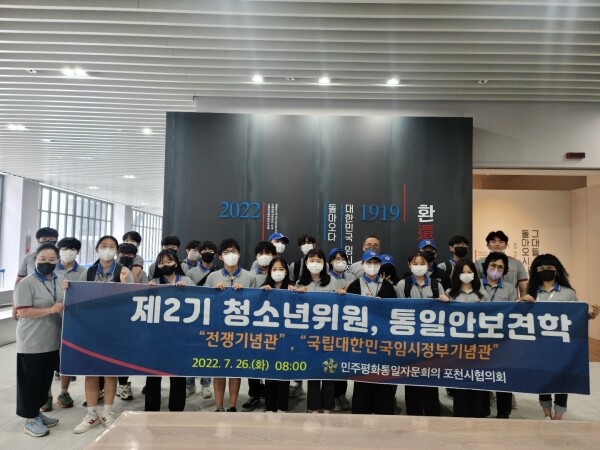 이날 통일 견학은 새로운 통일시대를 열어갈 미래 세대들인 청소년들에게 올바른 통일관 정립에 초점을 맞춰 전쟁기념관과 국립대한민국임시정부기념관을 견학했다.
