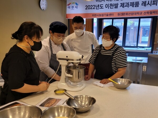 도비사업으로 추진중인 농산물가공 제품개발시범사업으로 추진되는 이천쌀 제과제품 개발 사업은 2021년도 이천시농업기술센터가 개발해 ㈜새롬푸드농업회사법인에 기술이전한 베이커리용 임금님표 이천쌀가루를 활용해 이천쌀의 부가가치를 높이고 임금님표 이천쌀의 브랜드가치를 활용한 상품개발로 지역내 소상공인인 동네빵집과 생산자인 농업인들의 소득향상을 위한 목적으로 지난 3월부터 7월까지 이천시농업기술센터와 청강문화산업대학교가 공동 개발했으며 이번 레시피 교육후에는 이천에 소재한 동네빵집들에서 판매될 예정이다.