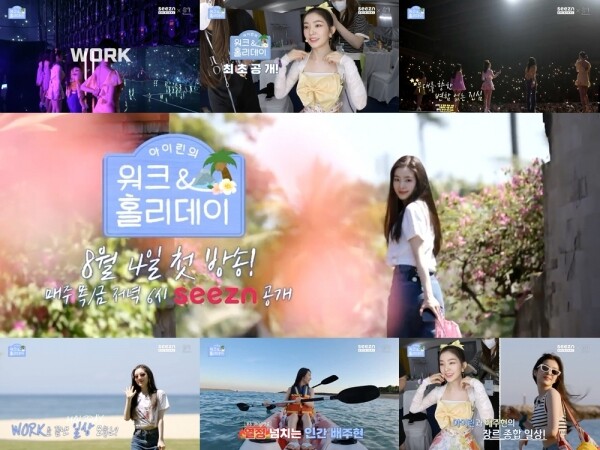 ‘아이린의 워크 & 홀리데이’은 오는 8월 4일부터 매주 목요일 금요일 오후 6시 seezn을 통해 공개되며 통신사 상관없이 누구나 무료로 시청할 수 있다.