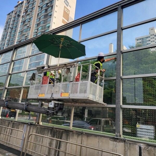 이달 중 대림아르빌아파트, 상우아파트 등 15곳의 투명방음벽과 유리 난간 등에 가로 세로 5cm 간격의 흰 점자 패턴이 새겨진 테이프 부착을 완료할 예정이다.