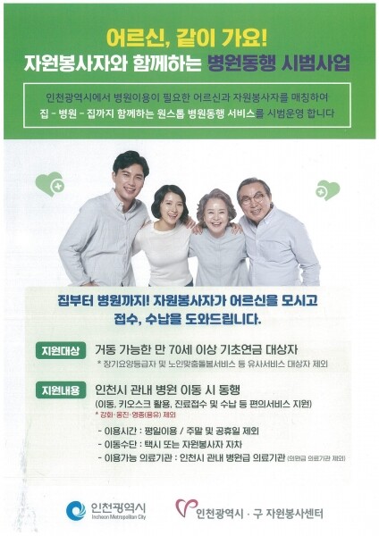 ‘병원동행서비스 지원’은 인천시 참여예산 사업을 통해 진행하는 시범사업이다.