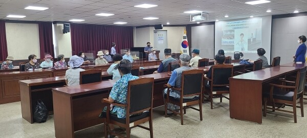 이번 교육은 7월부터 8월까지를 혹서기 기간으로 운영하며 노인 일자리 참여 대상자의 안전관리 및 건강 보호를 위한 관리방안으로 교육을 진행했으며 교육은 한국노인인력개발원의 협조를 받아 스마일 라이프연구소 강경란 대표의 강의로 진행됐다.
