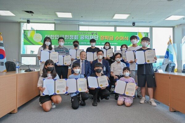 전진선 양평군수, 김병태 이사장을 비롯해 장학생 및 학부모 등 총 20여명이 참석한 가운데 각 읍·면으로부터 추천된 평소 학업에 충실하고 성실한 품행으로 타의 모범이되는 청소년 12명에게 각 50만원씩 총 600만원의 장학금이 전달됐다.