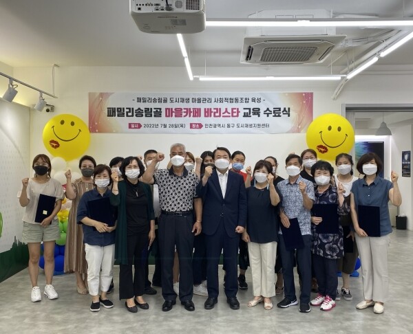 ‘패밀리송림골 마을카페 바리스타 교육’은 동구 내 도시재생사업으로 조성되는 북카페 운영을 위한 주민 역량 강화 교육으로 지난 5월부터 10회에 걸쳐 추진됐다.