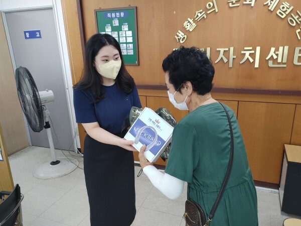 무더운 날씨에도 생계를 위해 리어카를 끌며 폐지 등 재활용품을 수집하는 어르신과 장애인들의 건강을 보호하기 위해 휴대용 목 선풍기, 햇빛 차단 치마모자를 배부한다.