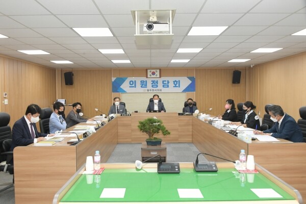 이날 정담회에서는 집행부에서 제출한 기획감사담당관 소관 ‘동두천시 성과시상금 지급·운영에 관한 조례안’, ‘동두천시 시설관리공단 설립계획’, ‘동두천시 상징물 개발 용역 추진안’ 사회복지과 소관 ‘동두천시 사회복지기금 설치 및 운용 조례 일부개정조례안’, ‘동두천시 아동급식 지원 조례 일부개정조례안’, ‘동두천시 아동복지심의위원회 구성·운영과 아동위원에 관한 조례 일부개정조례안’, ‘동두천시 학대피해아동쉼터 민간위탁 동의안’ 여성청소년과 소관 ‘동두천시 가족센터 민간위탁 동의안’ 세무과 소관 ‘동두천시 시세 징수 조례 일부개정조례안’, 일자리경제과 소관 ‘2022년도 출연금 증액 사전의결안’, ‘고용안정 선제대응 패키지 지원사업계획’, ‘재난특별지원금 추경 예산 편성안’, 안전총괄과 소관 ‘동두천시 지진피해 시설물 위험도 평가단 구성 및 운영에 관한 조례 전부개정조례안’, ‘동두천시 재난현장 통합지원본부 설치·운영 조례 전부개정조례안’ 환경보호과 소관 ‘동두천시 야생동물에 의한 피해보상 등에 관한 조례 일부개정조례안’ 전략사업과 소관 ‘동두천시 반환공여지 공원 토지매입 관련 보고’ 도시재생과 소관 ‘동두천시 생연2동·중앙동 도시재생활성화계획 변경안’ 평생교육원 소관 ‘동두천시 애향 장학기금 설치 및 운용 조례 일부개정조례안’ 등 총 18개 안건에 대해 집행부와 의회가 깊이 있는 의견 교환의 시간을 가졌다.