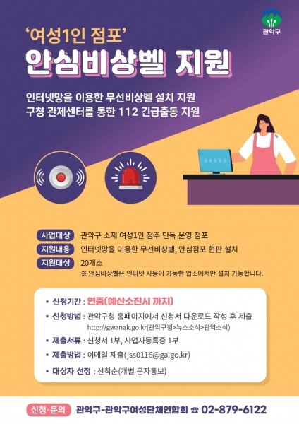 구는 최근 ‘여성 1인 점포’ 에 발생하는 범죄 예방을 위해 비상벨 설치 사업을 추진한다.