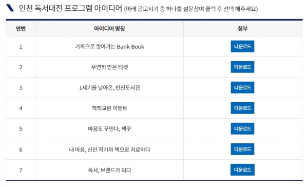 시는 지난달 20일까지 ‘2022 인천 독서대전’에 시민들이 기획단계에서부터 함께 함여 할 수 있도록 전 국민을 대상으로 ‘인천 독서대전 프로그램 공모전’을 실시했다.