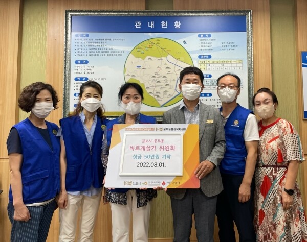이에 임종구 풍무동장은 “매번 지역주민들을 위해 힘쓰는 바르게살기 위원회에 감사드리며 도움의 손길이 필요한 우리 이웃들에게 따뜻한 온정의 마음을 담아 성금이 쓰이도록 하겠다”고 말했다.