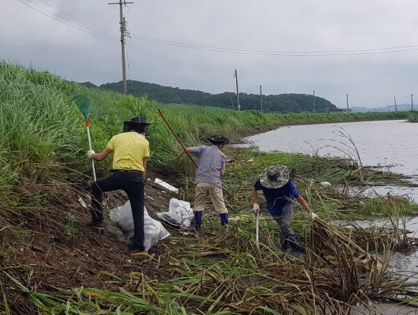 이날 회원 20여명은 비가 오는 궂은 날씨에도 불구하고 그간 강우로 떠내려온 폐스티로폼과 페트병, 생활쓰레기 등 약 2.5톤의 폐기물을 수거했다.