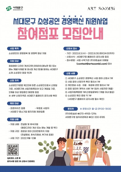 지원 대상은 서대문구 사업자등록자로 3개월 이상 영업 중인 소비자 방문형 매장의 소상공인이다.