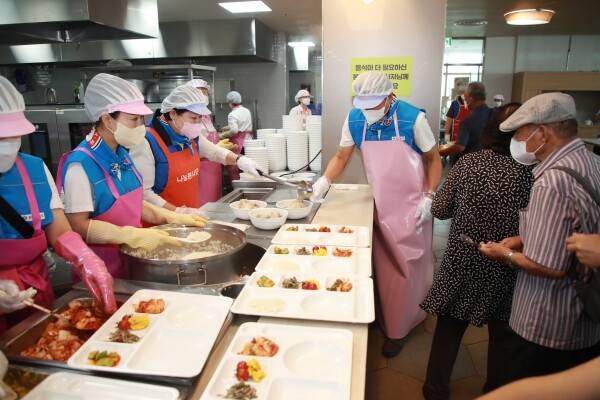 바르게살기운동 평택시협의회의 후원과 공공형 어린이집봉사단, 나눔봉사단의 봉사로 진행된 이번 행사는 삼복더위를 지내고 계신 복지관 어르신들에게 삼계탕 450인분이 제공됐다.