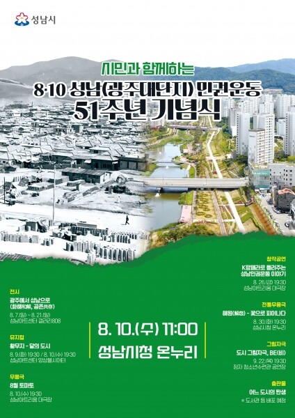 기념식은 1971년 당시 성남민권운동을 다룬 뮤지컬 ‘황무지’ 공연, 하동근 기념사업추진위원장의 기념사, 신상진 성남시장의 축사, 축하공연 등의 순으로 진행된다.