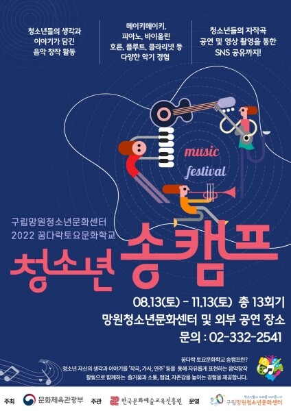 지난 6월 15일 구립망원청소년문화센터는 문화체육관광부가 주최하고 한국문화예술교육진흥원이 주관하는 ‘2022 꿈다락 토요문화학교 청소년 송캠프’ 운영 기관으로 선정됐다.