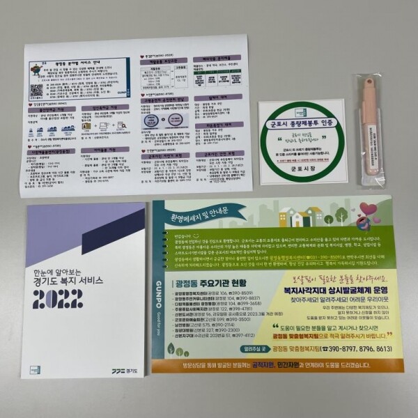 윤종호 광정동장은 “온라인 전입신고가 늘어나면서 문의를 위해 방문해야 하는 불편함을 줄이고자 주민들이 자주 문의하는 내용과 광정동과 군포시에서 추진하고 있는 우수 시책들을 담은 안내문을 발송하게 됐다”며 “신규 전입자들의 빠른 정착에 도움이 되었으면 한다”고 말했다.
