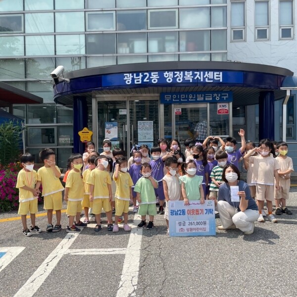 이에 대해 이상오 동장은 “어려운 이웃을 돕는 데 동참해준 성원어린이집 원장님과 교사, 아이들에게 감사하다”며 “귀중한 성금은 우리 주변에 사는 어려운 이웃들을 위해 소중하게 사용하겠다”고 답했다.