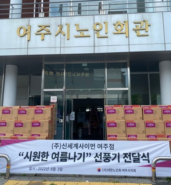 ㈜신세계사이먼 여주프리미엄아울렛 도현철 여주점장은 “무더운 여름 어르신들의 혹서기를 위해 냉방용품을 대한노인회 여주시지회로 지원하게 됐다”며 “앞으로도 신세계사이먼에서는 지역사회 취약계층을 위한 지원에 항상 관심을 가지겠다”고 전했다.