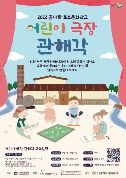 서덕현 사무국장은 “이번 프로그램에는 관해각 보존 사례와 심재갑 교수가 관해각을 지켜온 이야기, 고택 곳곳에 남은 가좌동 주민의 삶이 담겨 있다”며 “어린이들이 극본을 만들고 배우가 되어 지역을 상상해보는 의미있는 시간이 될 것”이라고 말했다.