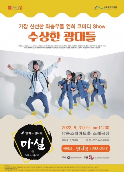 ‘수상한 광대들’을 공연하는 ‘이끌림 연희창작소’는 2018년 제7회 대한민국 창작 풍물대전 창작 부문 대상을 수상했으며 전통예술을 전공한 젊고 창의적인 청년 예술가들로 구성된 단체다.