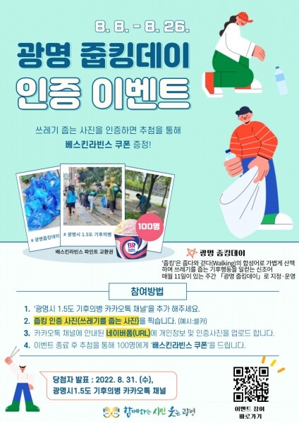 당첨자는 31일 광명시 1.5도 기후의병 카카오 채널에서 확인할 수 있다.