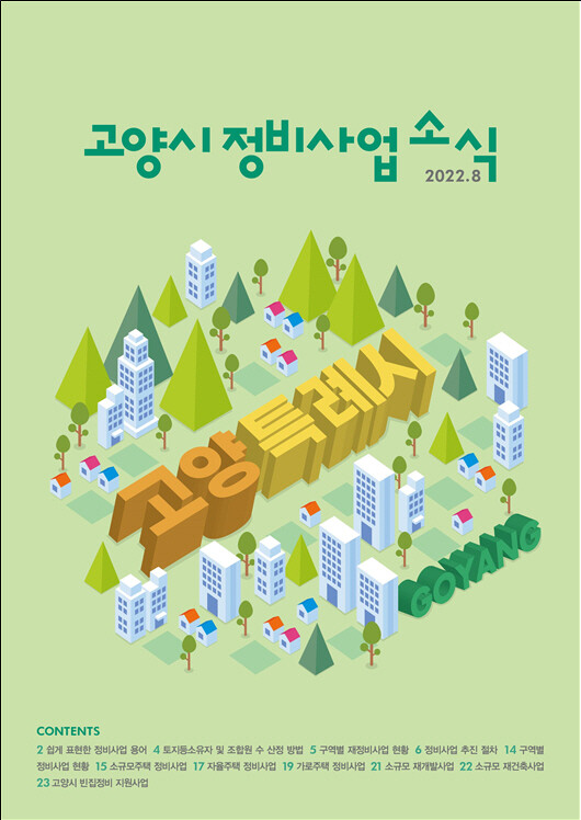 고양시는 도시경쟁력을 높이고 주민의 주거환경을 개선하고자 추진 중인 각종 정비 사업의 진행사항 등 정확한 정보제공을 통해 재개발, 재건축 및 소규모주택 정비사업 등에 대한 주민들의 이해와 투명성을 높이기 위해 격년으로 소식지를 발간해왔다.