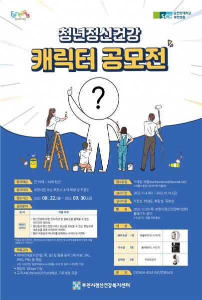 시 관계자는 “이번 청년정신건강 캐릭터 공모전이 청년들의 정신건강서비스에 대한 관심을 제고하고 친밀성과 접근성을 높일 수 있는 계기가 되길 기대한다”며 시민들의 많은 관심과 참여를 당부했다.