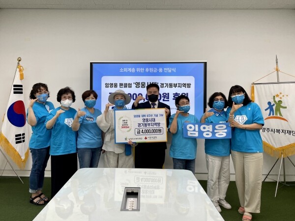 영웅시대 경기동부지역방 관계자는 “임영웅의 데뷔일을 축하하며 보다 뜻깊은 일을 하고 싶어 회원들과 마음을 모았다”며 “앞으로도 임영웅과 함께 어려운 이를 위한 나눔을 계속해서 이어갈 것”이라고 전했다.