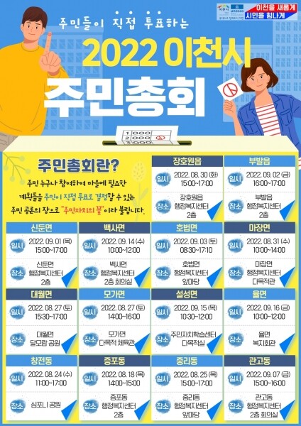 김경희 이천시장은 "주민자치의 꽃인 주민총회의 주인공은 바로 여러분인 만큼 주민들의 많은 관심과 참여를 바란다"며 "각 읍면동 주민자치회에서 열심히 준비한 주민총회를 통해 우리시 풀뿌리 민주주의가 굳건하게 뿌리내리길 기대한다"고 말했다.