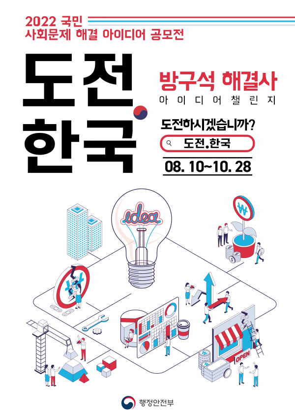 접수된 아이디어는 11월 “도전.한국” 운영위원회의 심사를 거쳐 과제별 우수 아이디어를 선정하고 12월 중으로 시상 및 포상금 지급이 이루어질 예정이다.