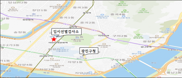 먼저, 구는 군자동에 위치한 어린이대공원역 5번 출구의 광진광장을 임시선별검사소 운영 장소로 선정했다.