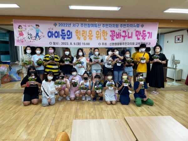신현원창동 주민자치회 교육문화분과가 기획한 ‘아이들의 힐링을 위한 꽃바구니 만들기’는 정원희 위원의 재능기부로 진행된 사업이다.