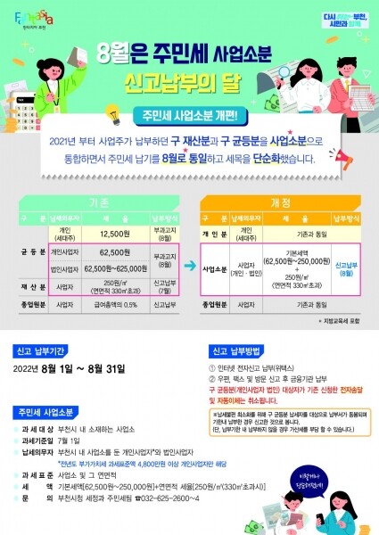 이번 주민세 납부대상은 7월 1일 현재 부천시에 주소를 둔 세대주와 사업소를 둔 사업자다.