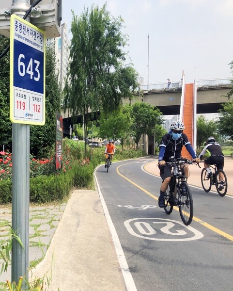 구는 이런 문제점을 해소하기 위해 중랑천 자전거길에 주요지점에 기초번호판 76개를 설치했다.