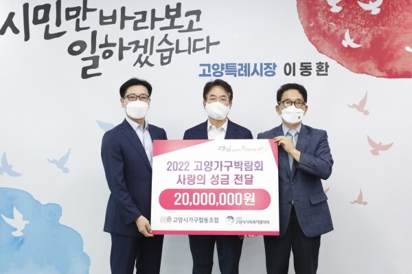 이번 성금 전달은 2022 고양가구박람회 개최 지역환원사업의 일환으로 이루어졌다.