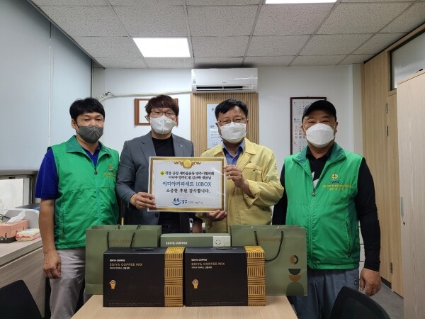 이날 후원은 회원인 김규학 이디야 양주IC점 대표가 커피세트 10BOX를 흔쾌히 제공했다.