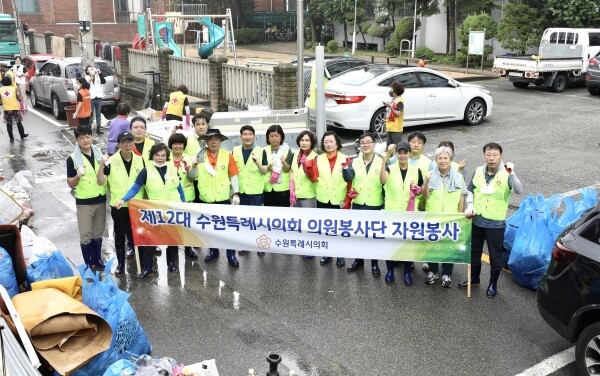 이날 김기정 의장, 이재식 부의장을 비롯한 의원봉사단은 평동 행정복지센터 직원들과 함께 빗물이 주택 안으로 범람하면서 유입된 토사물을 제거하고 흙범벅인 가전, 가구 등 집기 세척 등 수해복구에 구슬땀을 흘렸다.