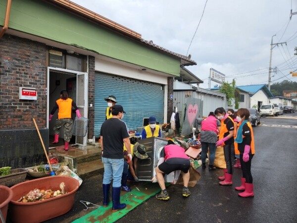 이날 의용소방대연합회원 41명은 침수피해를 입은 주택을 방문해 주택 안팎의 흙더미 제거, 가재도구 세척, 피해 물품 정리, 주변 부유물 정리 등 수해복구에 힘을 보탰다.