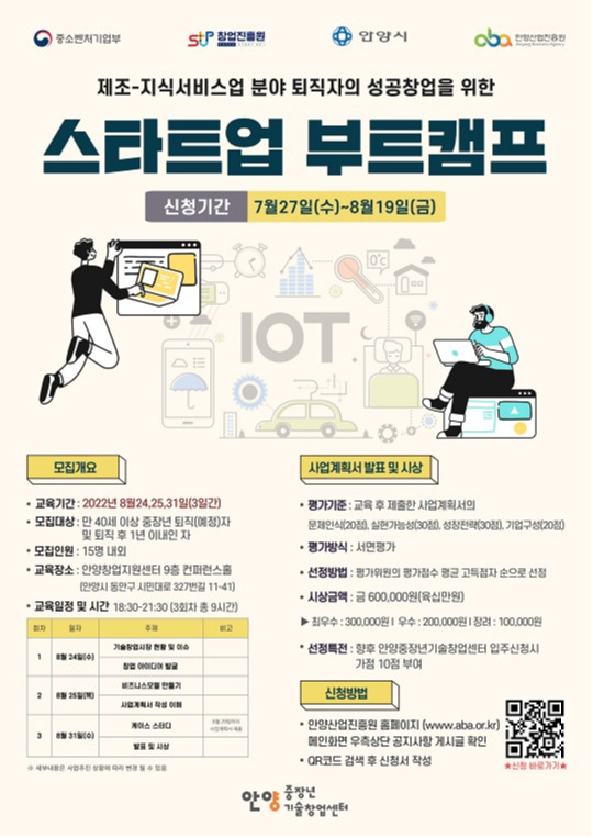 신청 방법은 진흥원 홈페이지 메인에 공지사항에서 확인하거나 포스터 하단의 QR코드를 인식시켜 신청서를 작성할 수 있다.