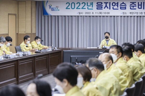 이날 준비보고회는 주요일정 안내, 전시전환 절차 연습, 전시 현안과제토의, 실제훈련 등 준비사항보고와 부서별 주요 사태별 조치사항 발표 등 성공적인 을지연습을 위한 준비사항을 최종 점검하기 위해 마련됐다.