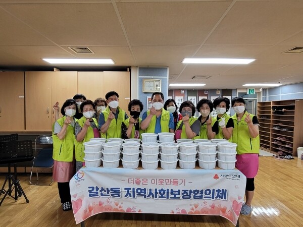 갈산동 지역사회보장협의체는 매년 여름 저소득 가정에 삼계탕을 대접해 왔으며 특히 올해는 폭우로 집이 침수되어 식사에 어려움을 겪고 있는 가구에 직접 손질해 마련한 삼계탕을 전달했다.