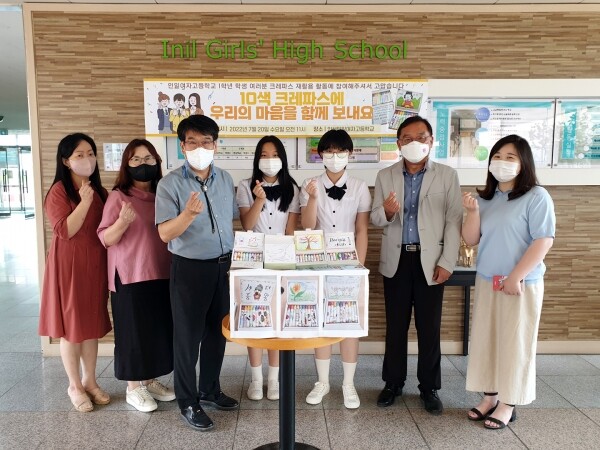 ‘몽땅 크레파스의 꿈’은 몽땅 크레파스를 재활용해 새로운 크레파스를 만든 후 제3세계 아동들에게 전달하는 프로그램으로 이번 활동에는 인일여자고등학교 1학년 9개반 171명의 학생들이 크레파스 띠지 만들기, 그림 또는 손편지로 크레파스 상자 꾸미기 활동에 참여했다.
