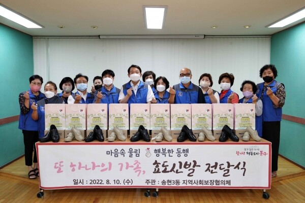 효도신발을 받은 한 어르신은 “신발이 신고 벗기가 편하고 푹신해 무릎이 참 편하다”며 “동에서 항상 가족처럼 챙겨주고 관심을 가져주셔서 고맙다”고 말했다.