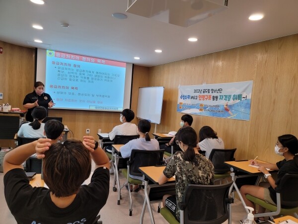 더불어 일상생활에서 위급한 환자가 발생 시, 기본적인 응급 처치 요령을 배웠으며 환자가 숨을 쉬지 않거나 응급상황에서 심폐소생술을 시행할 수 있도록 인명구조 방법을 교육했다.