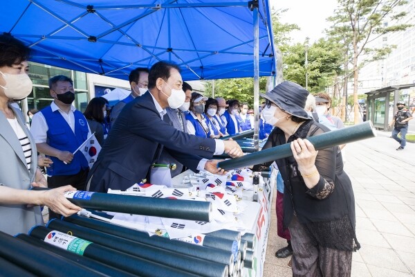 이날 행사에는 윤환 구청장, 구 관계자, 한국자유총연맹 인천계양구지회 회원 등 40여명이 참여해 구민들에게 태극기 1,000개를 무료로 배부했다.